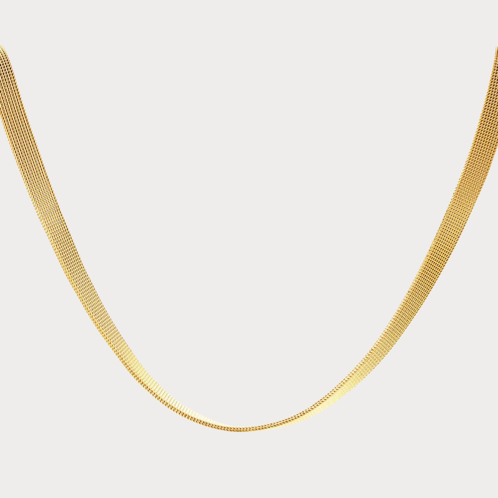 A flat snake like chain necklace, that hands in a unique way. Perfect on its own or to layer with more necklaces.