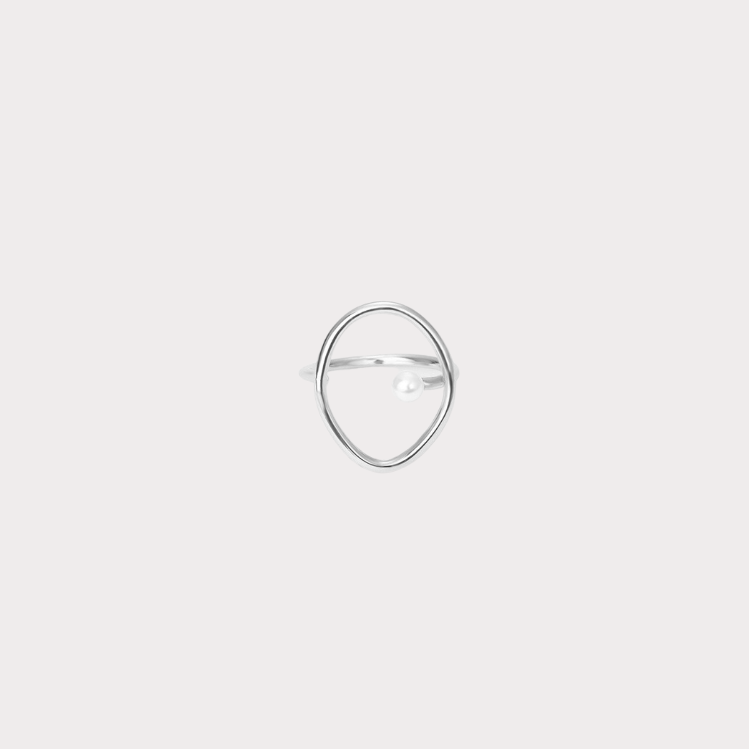 Dainty ring, with a slim ring and empty circle that contains a mini pearl like detail.